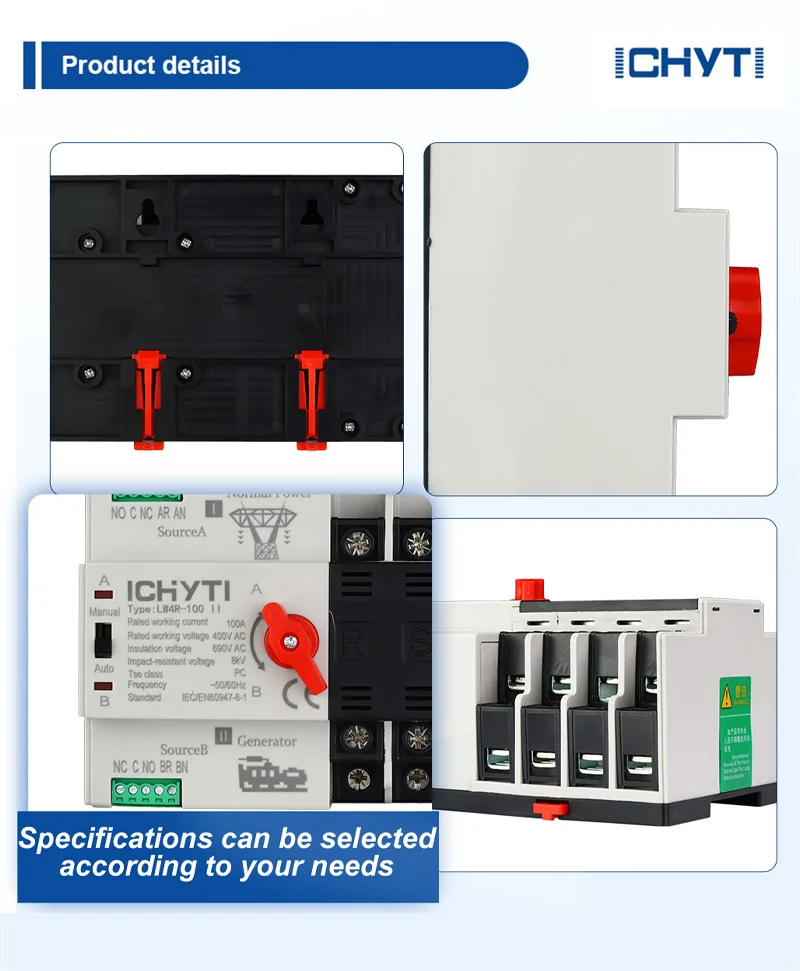 China Factory ICHYTI Wholesale Buy Discount single phase automatic changeover switch has three switching functions in the power supply system of three-phase four wire power grid, including automatic switching of standby power supply, backup power supply, and power grid and generator. Tria phase voltage efficacii pretii et phase voltage efficacii valoris et phase duorum potentiarum fontium in real-time temporis deprehendere potest, et automatice ab abnormis potentiae fontibus ad fontes potentiae normales in casu overvoltage, undervoltage, aut in detrimento quovis tempore transibit.